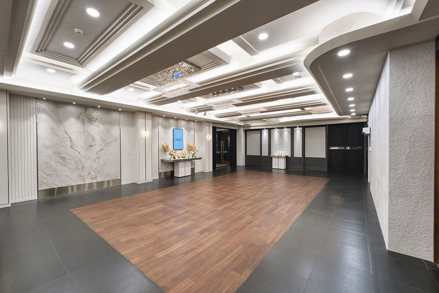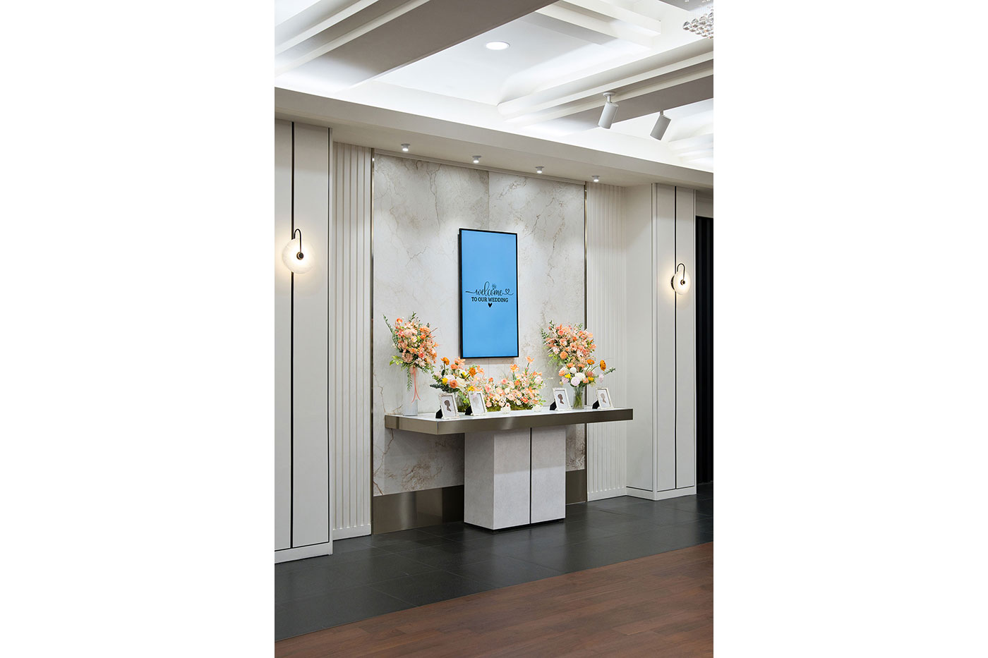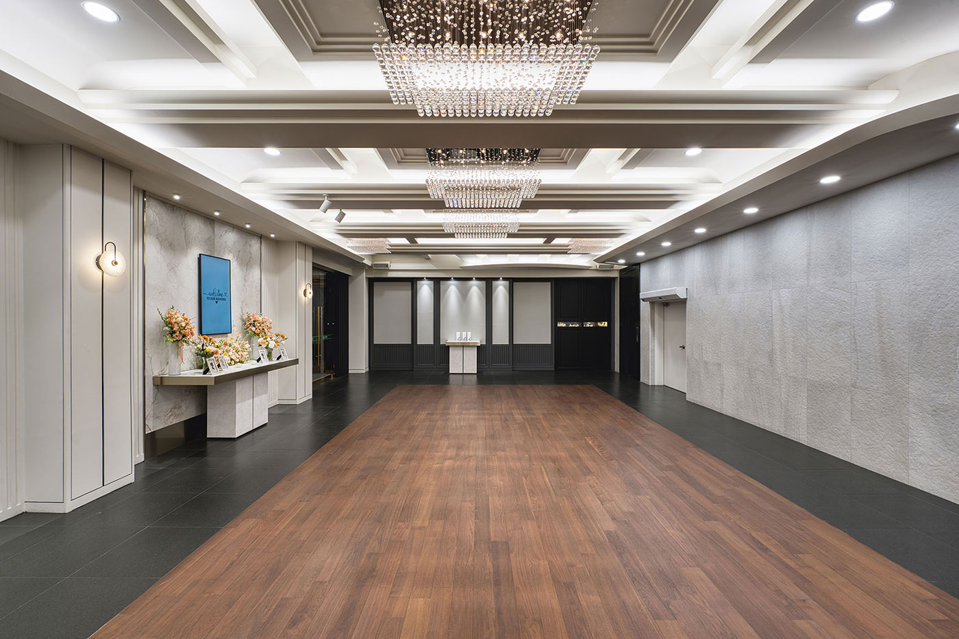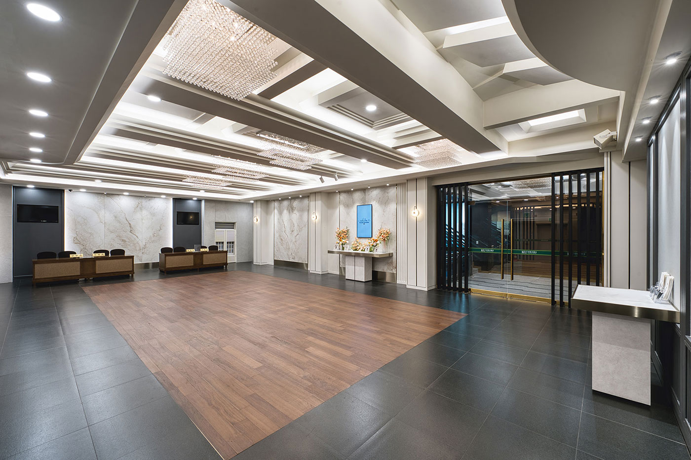 들어오는 순간부터 여유로움과 차분함을 주어 고객님의 품격을 높여 드리는 고품격의 로비라운지에서 하객을 맞이 할 수 있도록 꾸몄습니다. 축하객들을 위해 준비된 넓고 탁트인 로비와 접수대는 감각적인 인테리어와 수려한 조명, 깔끔한 디자인으로 품격있는 공간을 제공합니다. 또한 신랑신부, 하객의 동선을 고려하여 모든 시설물에 이동이 편리합니다.
